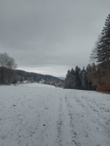 Pak „hupky dupky“ na 1234,5 m. Po cestě na sedle Jedlové už první stopy běžkařů. Kdyby to bylo před X lety, tak bych věděl, kdo to byl.